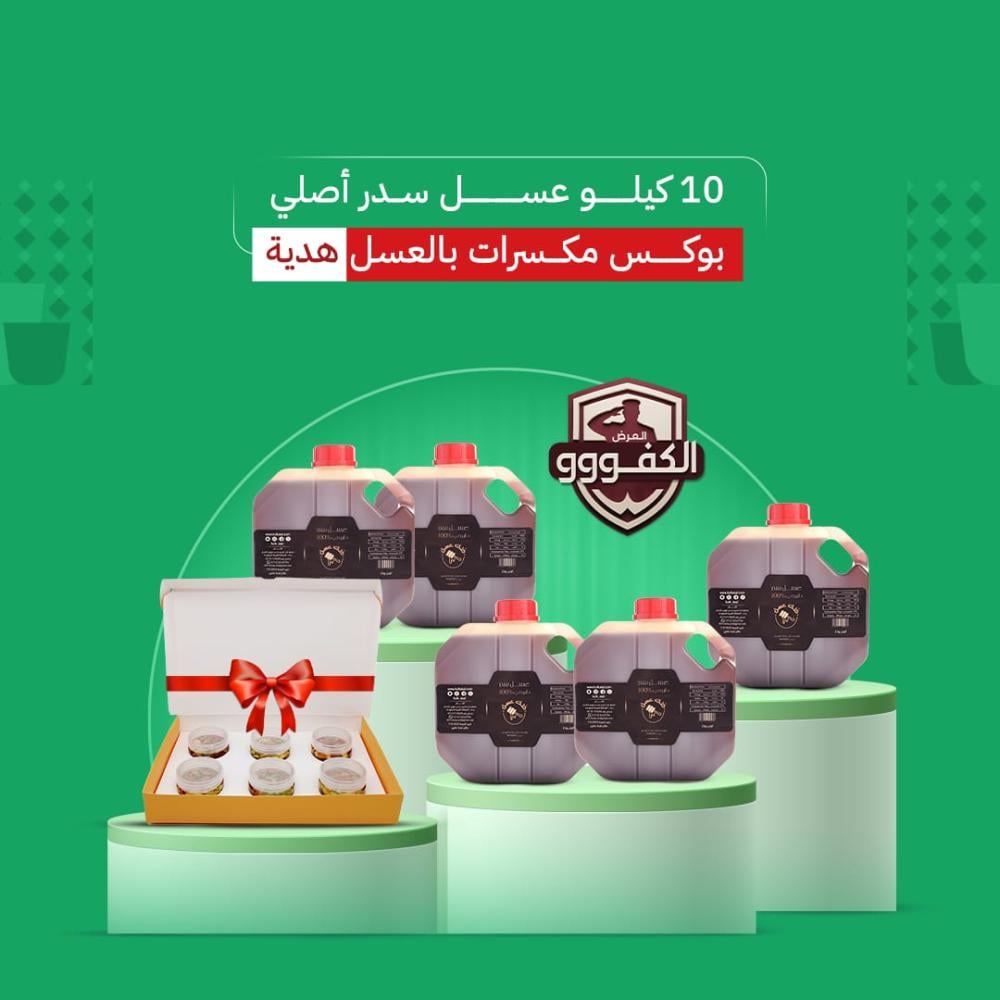 10 كيلو عسل سدر طبيعي 100% (قطفة جديدة درجة اولى) + بوكس عسل بالمكسرات هدية
